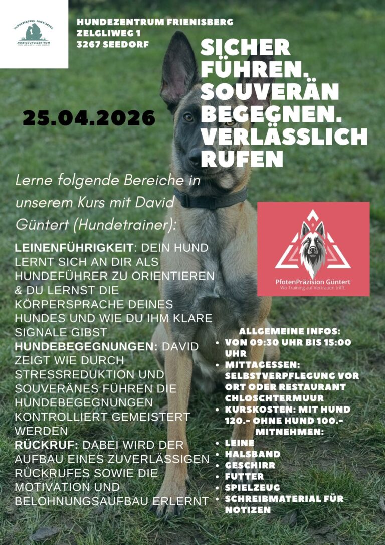 Ort: Seminarraum Hundezentrum FrienisbergAnmeldung
