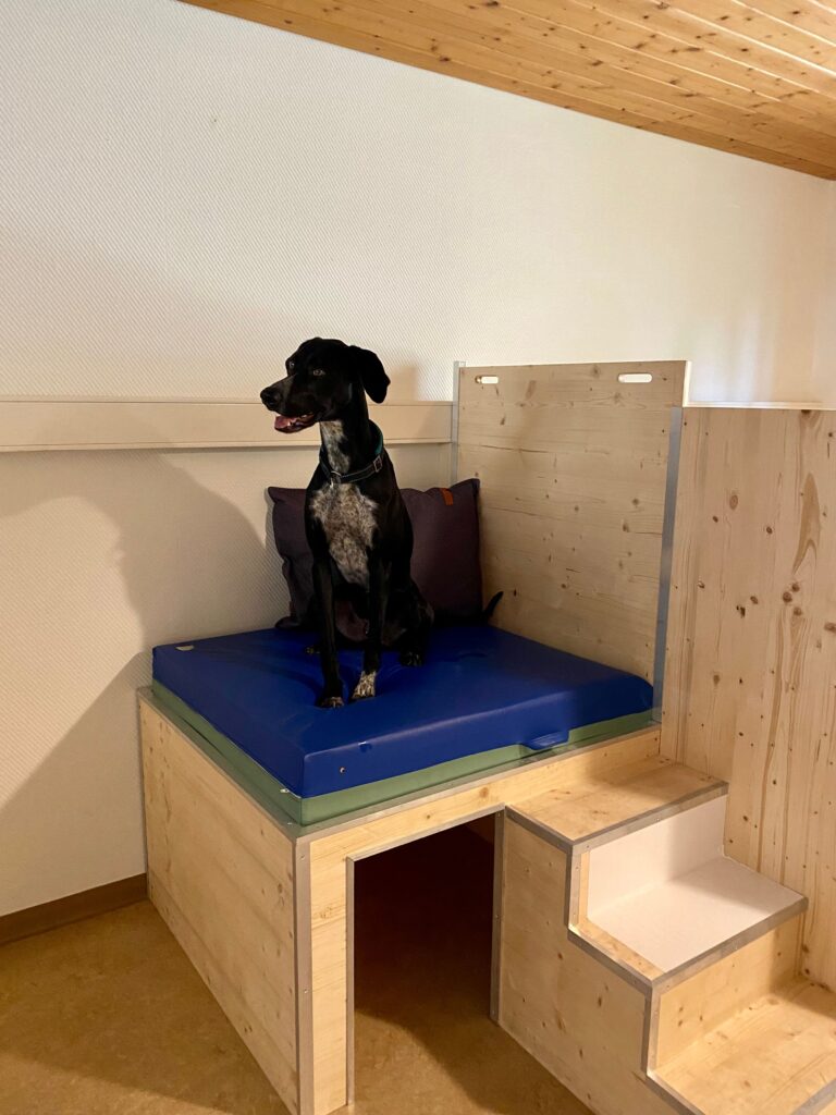Unsere Einzelzimmer sind rund 17m2 gross und bieten dem Hund diverse Matten auf verschiedenen Ebenen.